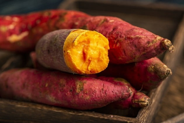 - 단감과 고구마는 둘 다 식이섬유가 상당히 많아 소화 속도가 매우 느림