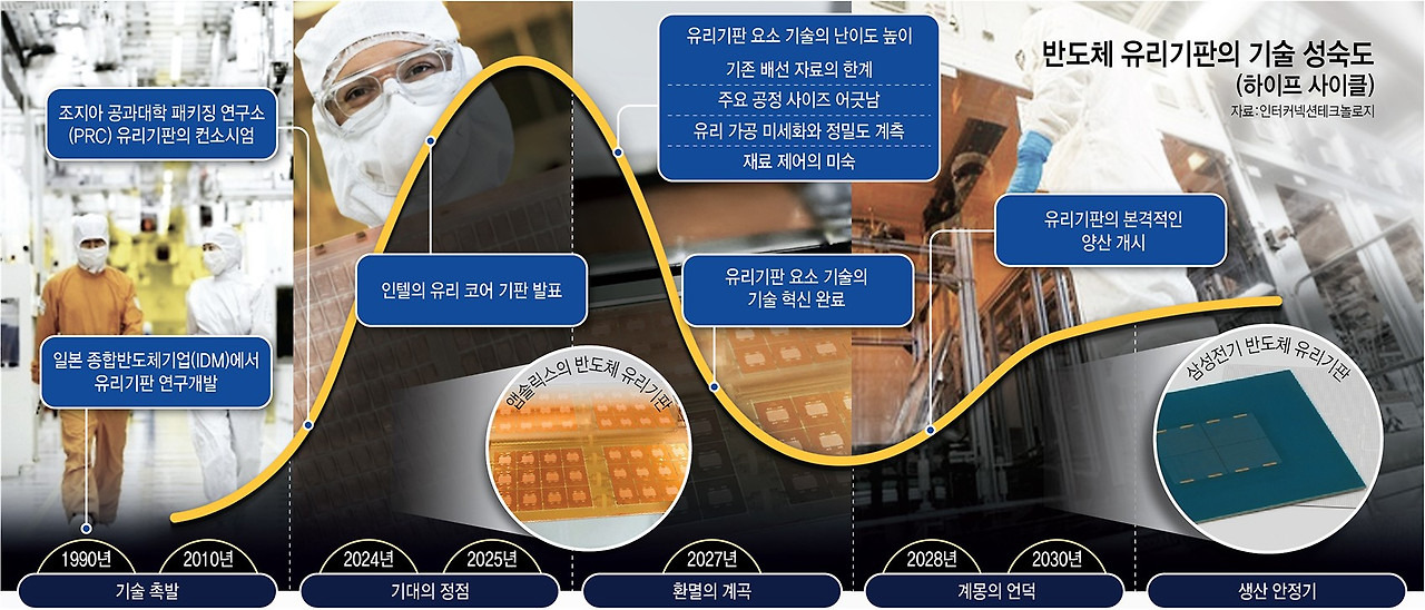 반도체 산업 내 패키징 구조가 보다 얇고 고집적화되면서 기판 소재 변화가 필수화되고 있으며, 유리기판이 그 대안으로 떠오른 셈입니다. 다만 기술 상용화 시점은 아직 초기단계이며, 양산화·수율 확보·가격 경쟁력 등 넘어야 할 과제도 많다는 점이 유의사항입니다.