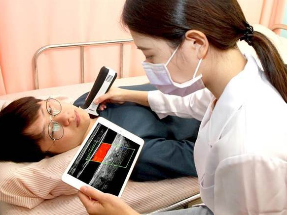- 초음파 프로브(탐촉자)를 이용해 장기 확인