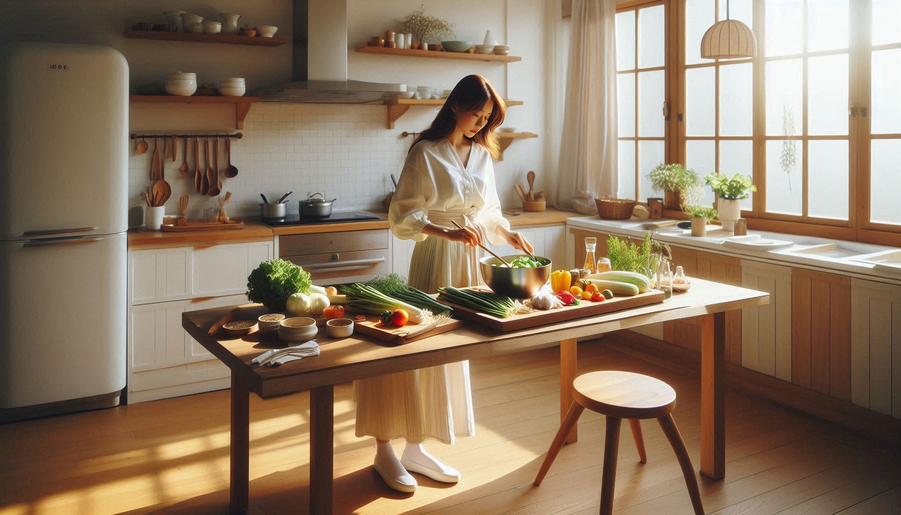 봄동은 잎이 넓고 줄기가 상대적으로 단단합니다. 한 번에 동일한 크기로 썰려 하기보다, “잎-줄기”를 구분해서 크기를 맞추면 식감이 균일해집니다. 잎은 4-5cm로, 줄기 쪽은 2-3cm로 조금 더 작게 썰면 씹는 균형이 좋아집니다.