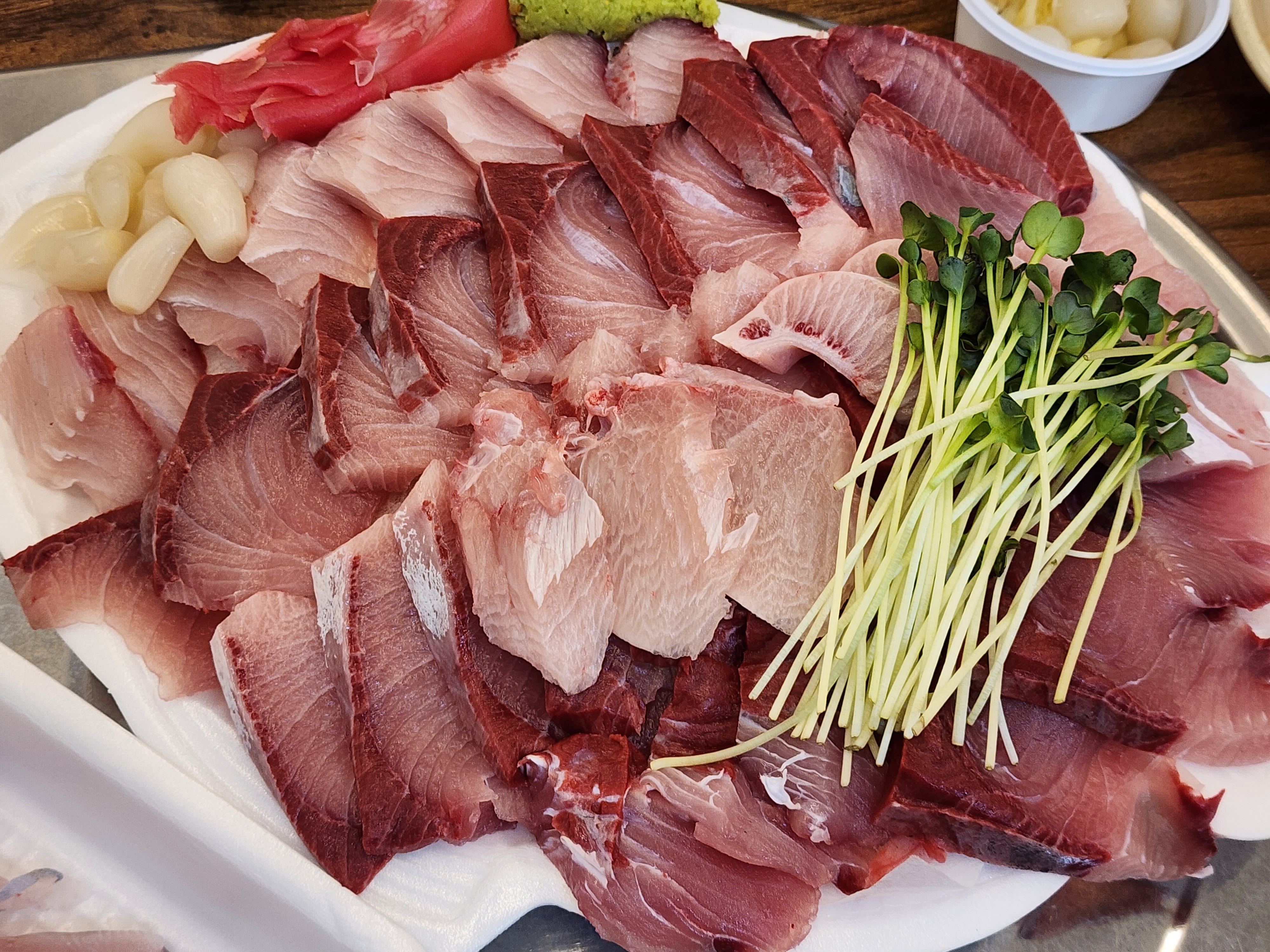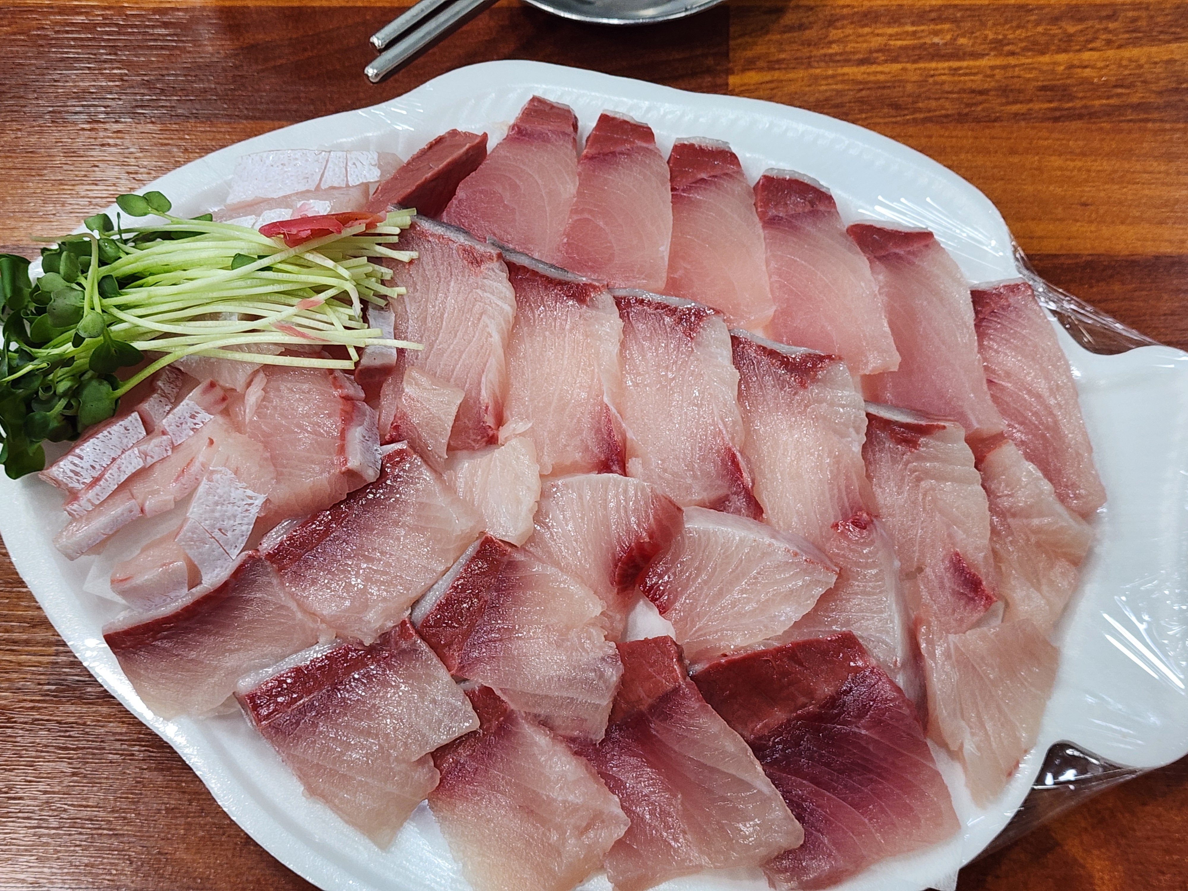 2024년 연안부두 어시장 내 군산상회에서 35000원에 구입했었던 대방어회, 기름기도 고소했고, 활어에서 갓 잡아서 쫄깃한 식감도 살아 있었던.