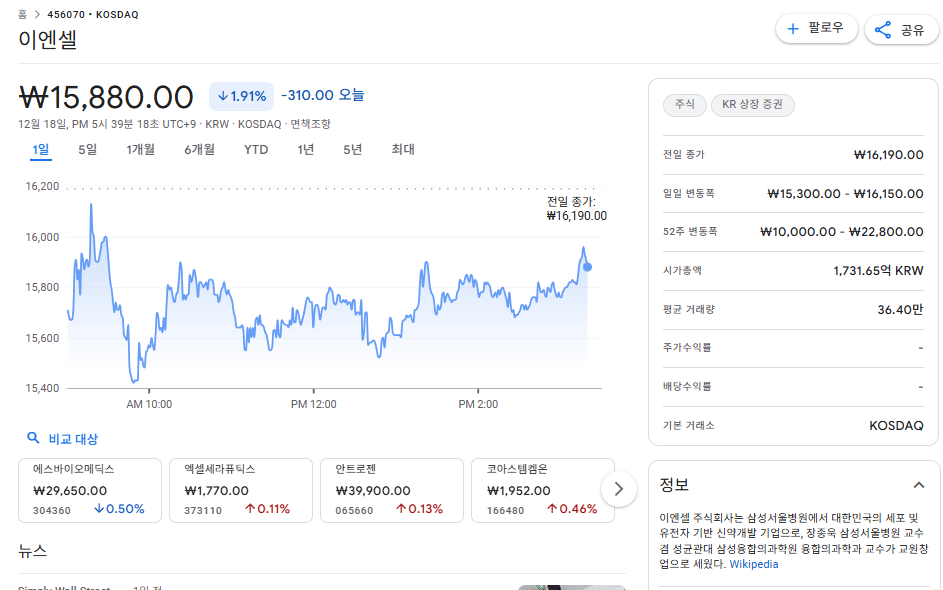 이엔셀의 주가는 특허 등록 소식 이후 단기적으로 강한 상승세를 보였습니다. 이는 바이오 시장에서 희귀질환 치료제와 미국 특허라는 두 가지 키워드가 결합될 경우 얼마나 큰 시장 반응을 이끌어낼 수 있는지를 보여주는 사례라고 할 수 있습니다. 다만 주가 전망을 평가할 때는 단기 이벤트와 중장기 가치 요인을 구분해서 볼 필요가 있습니다.