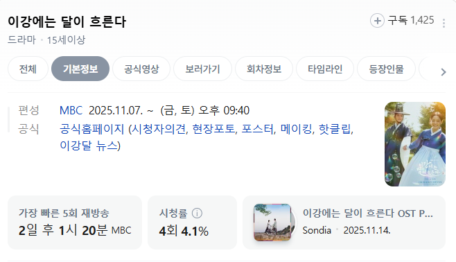 2025년 하반기 MBC 금토드라마 라인업 중 가장 주목받는 작품이 바로 이강에는 달이 흐른다입니다. 가상역사극 판타지 장르로 웃음을 잃어버린 세자와 기억을 잃은 부보상 여인의 영혼 체인지라는 흥미로운 설정을 앞세워 방송 전부터 팬덤을 형성하며 기대를 모았습니다. 조선이라는 배경 속에서 권력과 운명, 사랑과 복수, 그리고 정체성의 혼란까지 입체적으로 다루는 작품인 만큼 스토리의 깊이와 배우진의 열연이 더해져 OTT와 지상파 모두에서 화제가 되고 있습니다. 그만큼 시청자들은 몇부작인지, 원작이 존재하는지, 결말은 어떻게 흘러갈지에 대한 궁금증을 끊임없이 제기하고 있습니다.