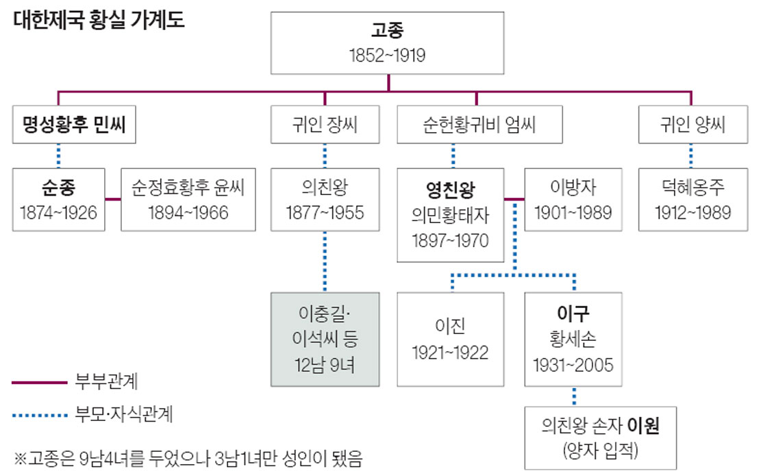 - 고종 → 영친왕 (황태자, 일본 편입)