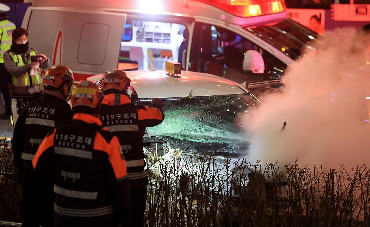- 택시 전면부 파손 및 연기 발생