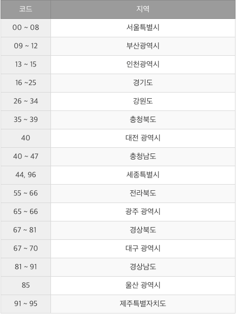 - 93~99: 예비 코드(향후 행정구역 변경 대비)