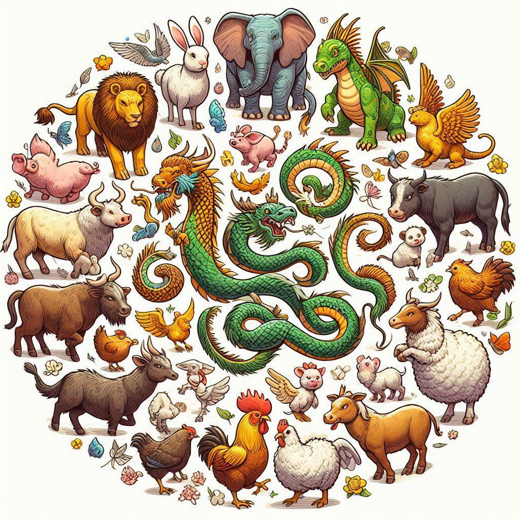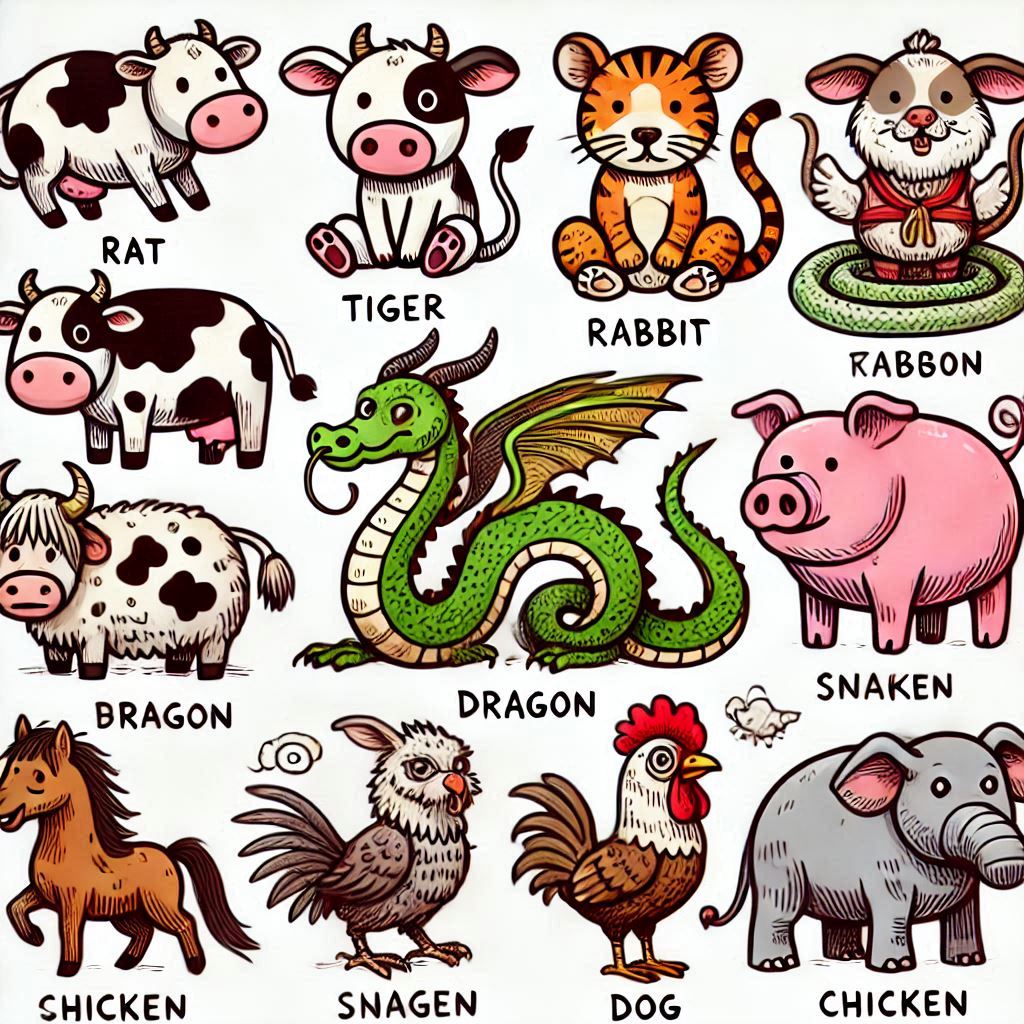 12간지는 12개의 동물로 구성되며, 각 동물은 오행(목·화·토·금·수), 방위, 계절, 그리고 하루 시간과 연결됩니다. 순서는 다음과 같습니다.