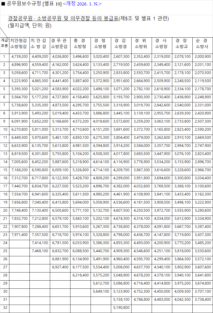 경찰·소방 공무원 봉급표 2026