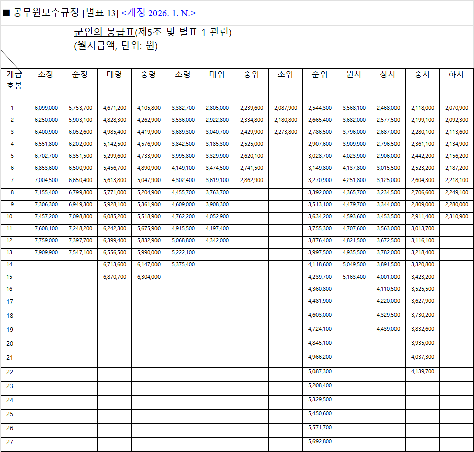 • 전 계급 동일 인상률 3.5% 적용