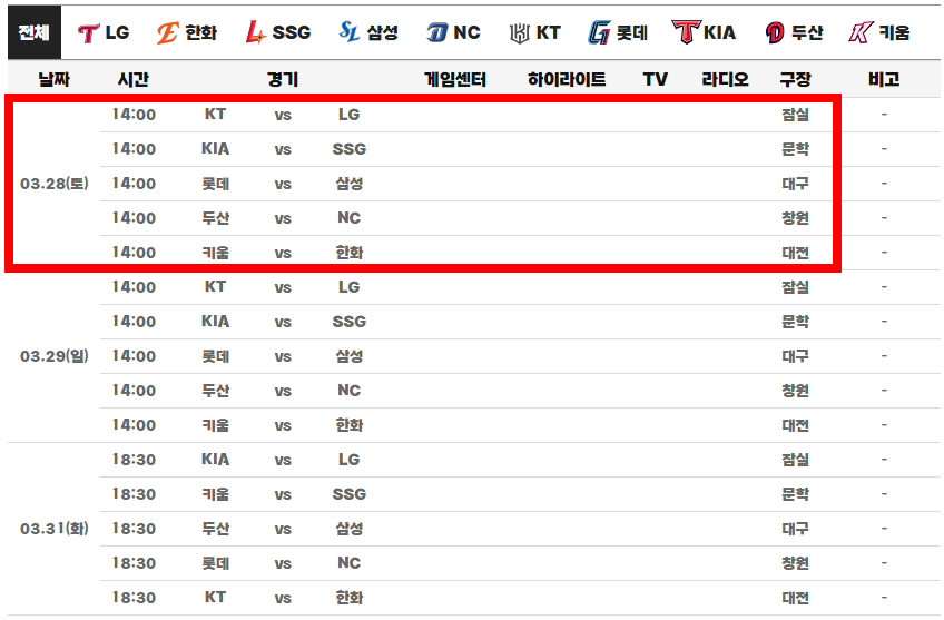 - KIA 타이거즈: 4월 3일 NC전