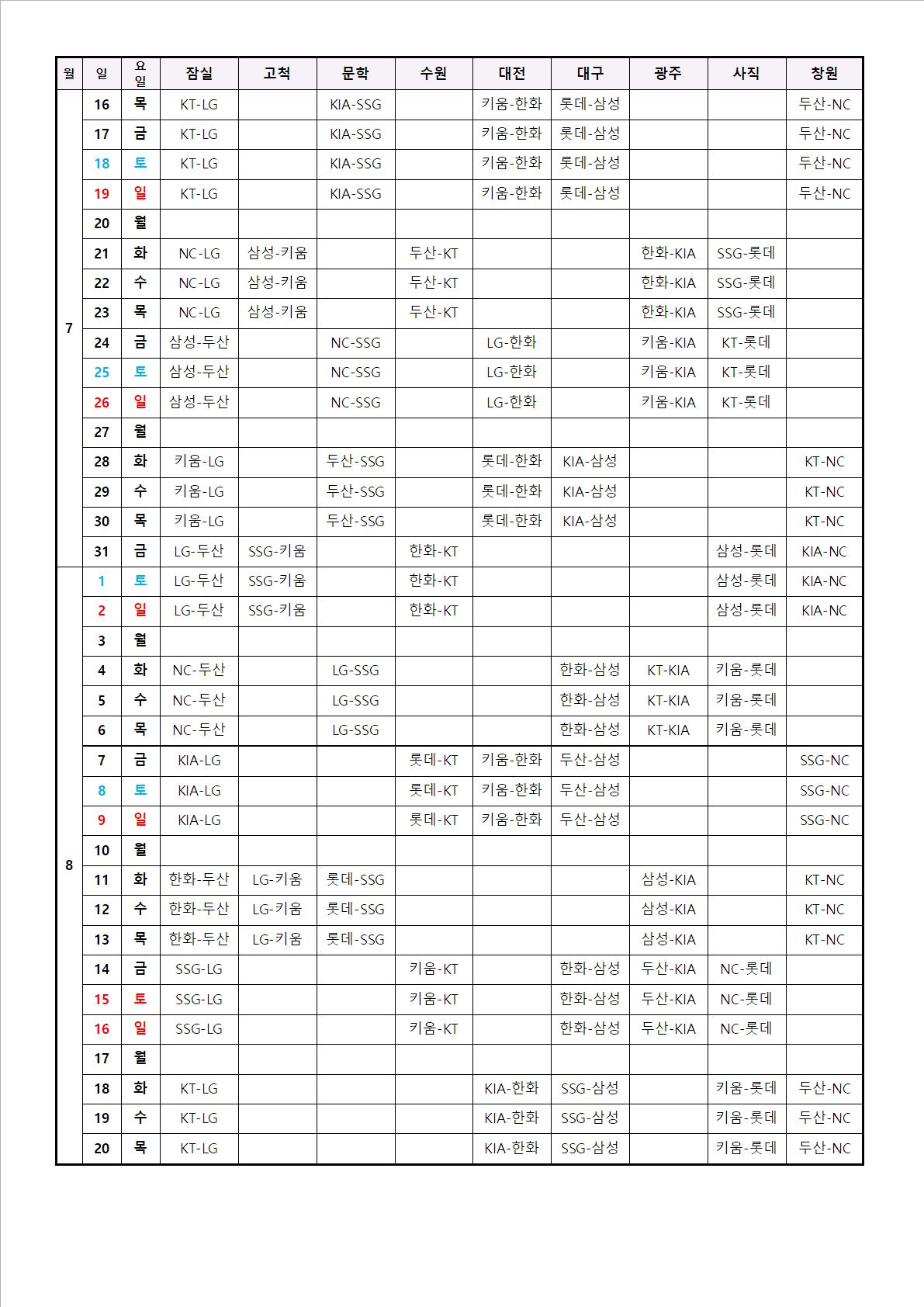 - 후반기 순위 경쟁 핵심 대진