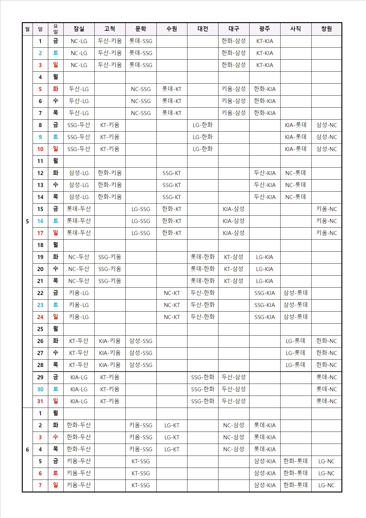 2026 프로야구 일정 | 홈개막전 | 대진표 | 시즌 일정표