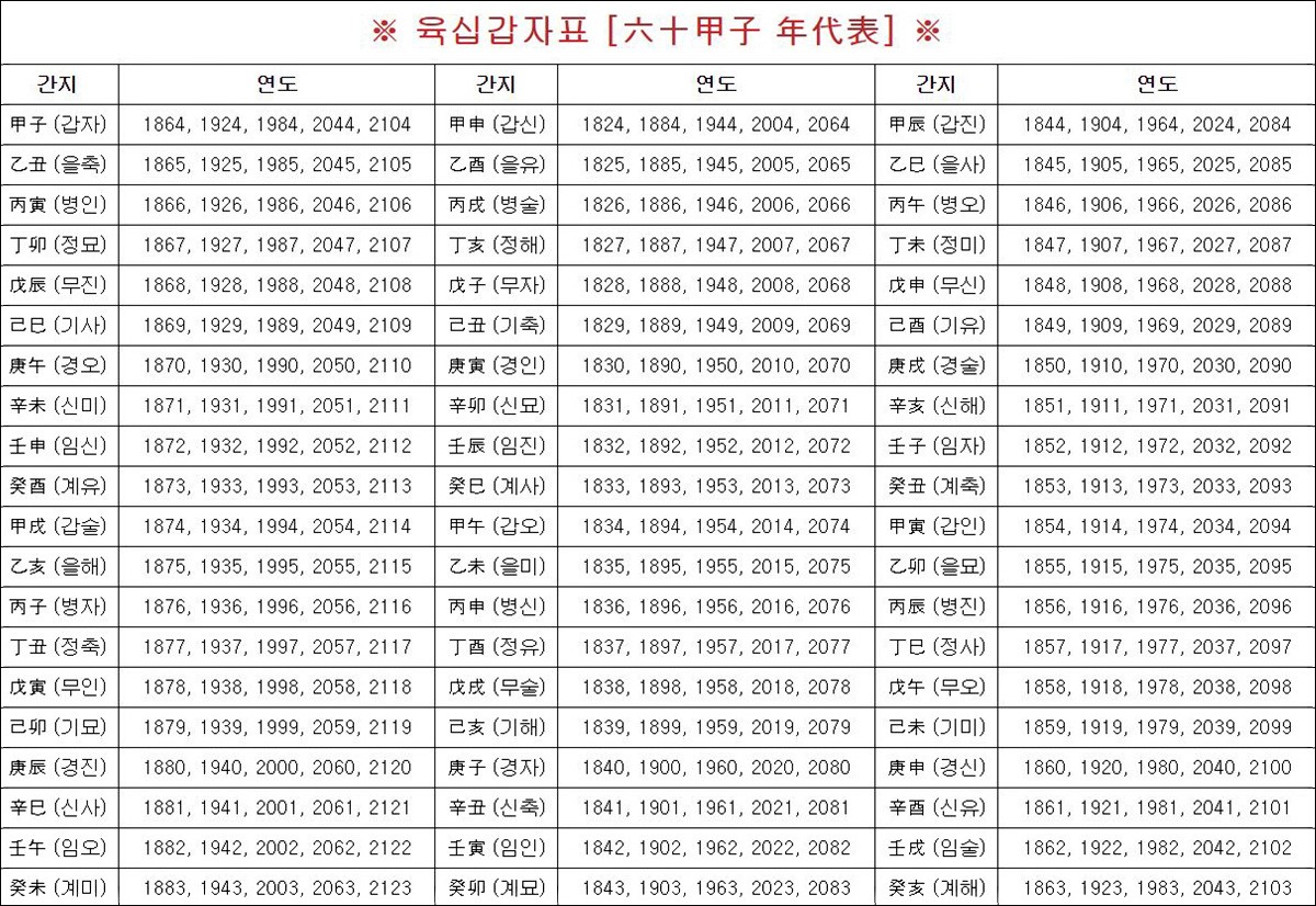60갑자 계산 방법과 육십갑자 조견표 활용